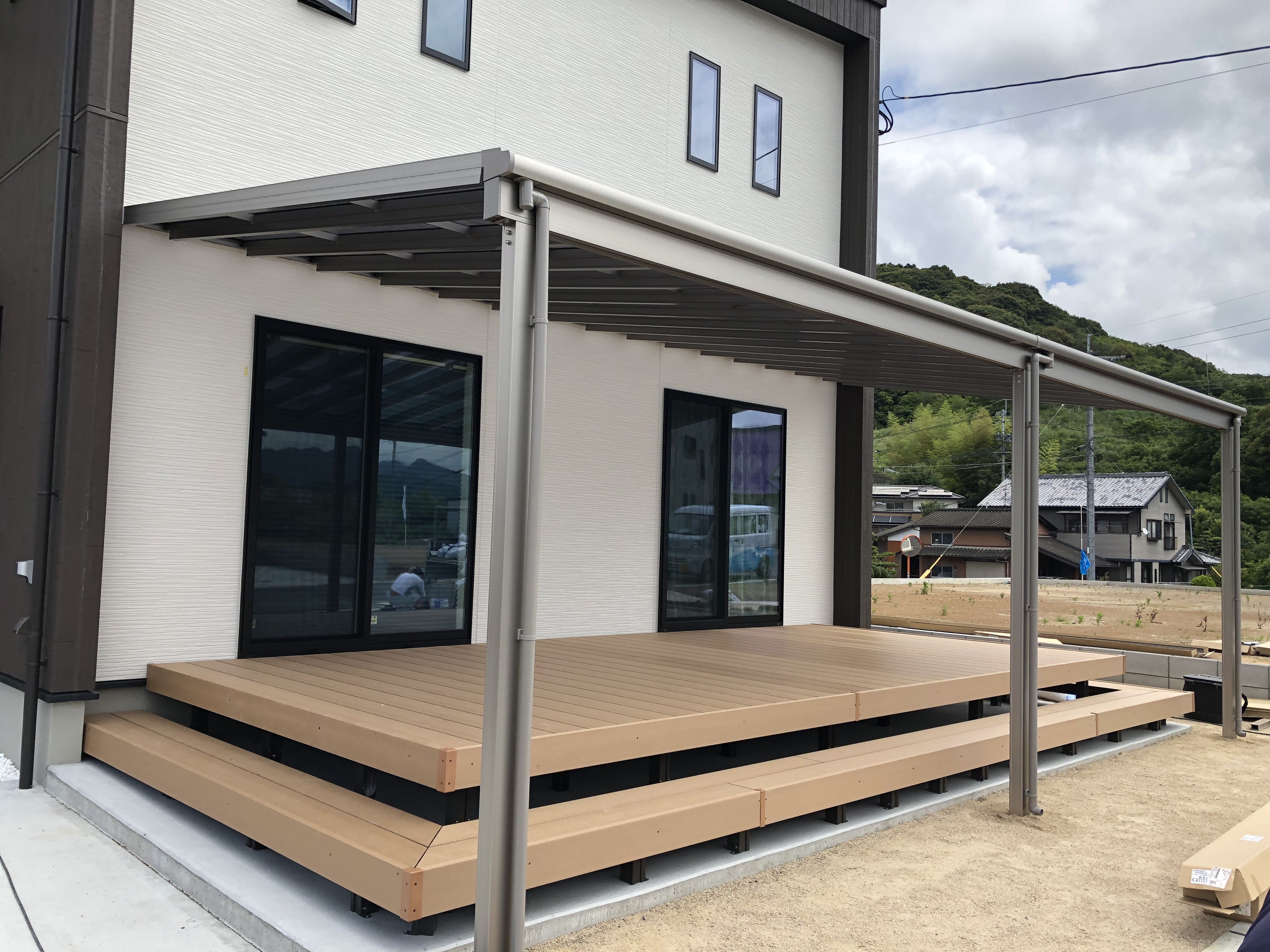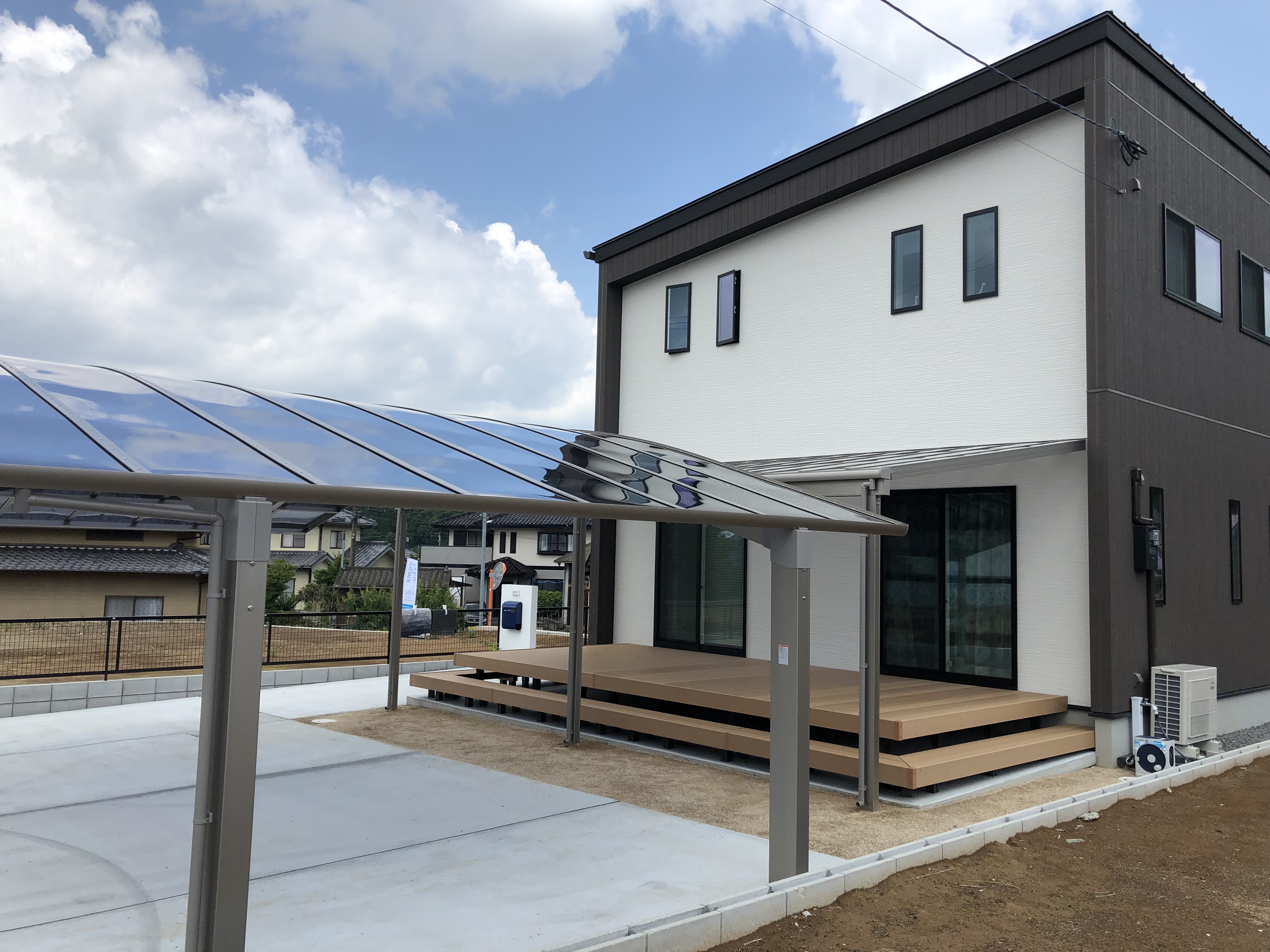 そしてテラス、ウッドデッキ、カーポート 全て揃うことで迫力がすごいです✨今流行りのインスタ映えと言っても良いくらい迫力があります✨お施主様も楽しみに待っていらっしゃいましたので、喜んで頂けたのではないかと思います(*^^*)