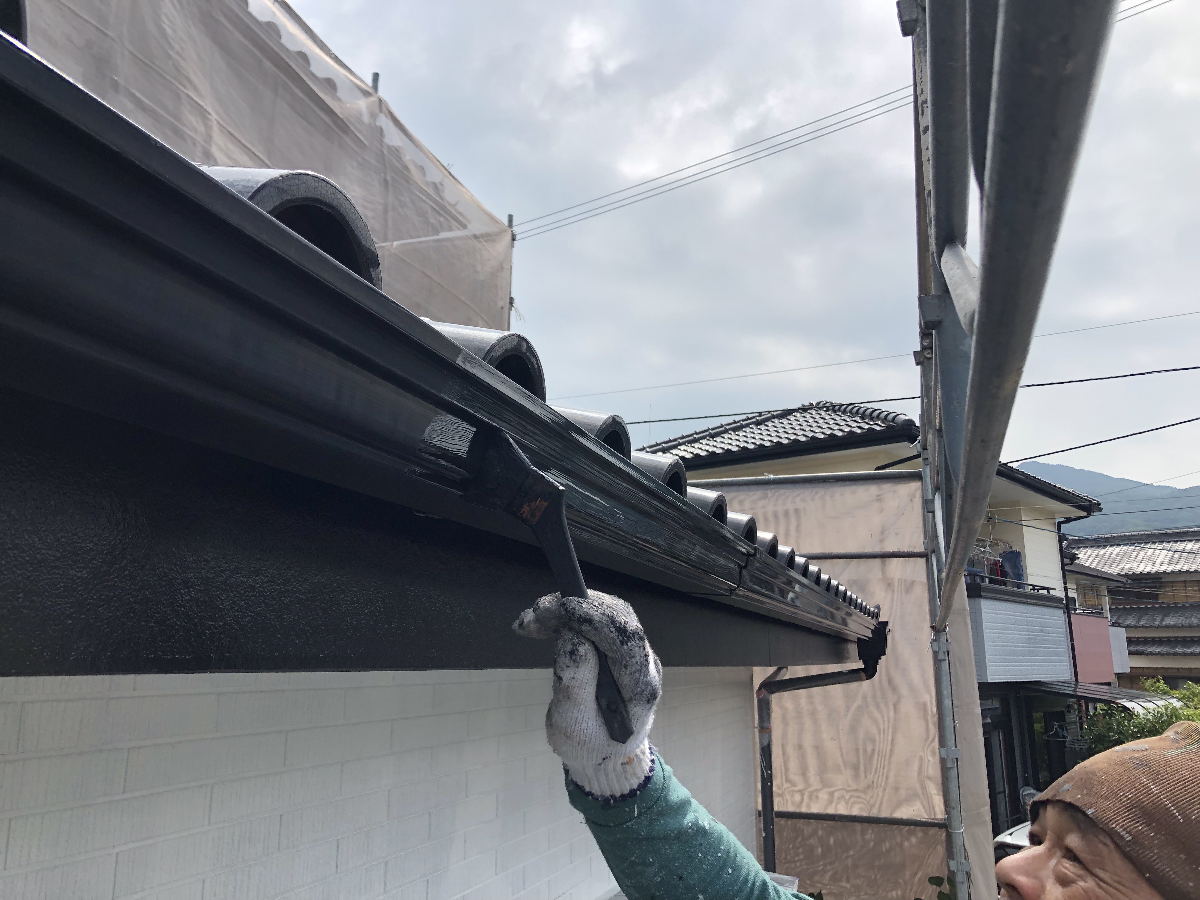 雨樋の上塗り作業中です✨🙆‍♂️