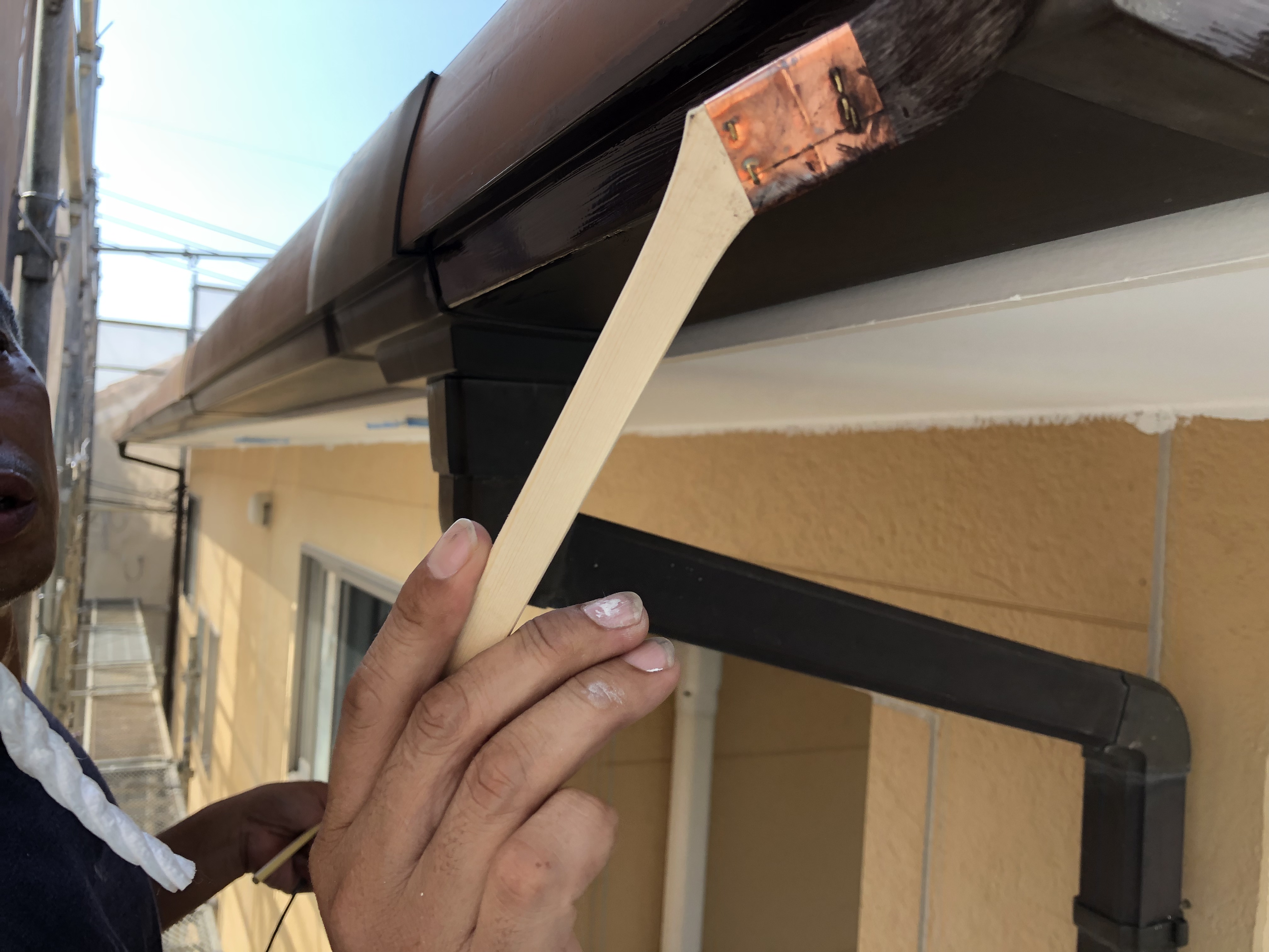 現在は、軒天と雨樋の塗装作業に入っております^ ^