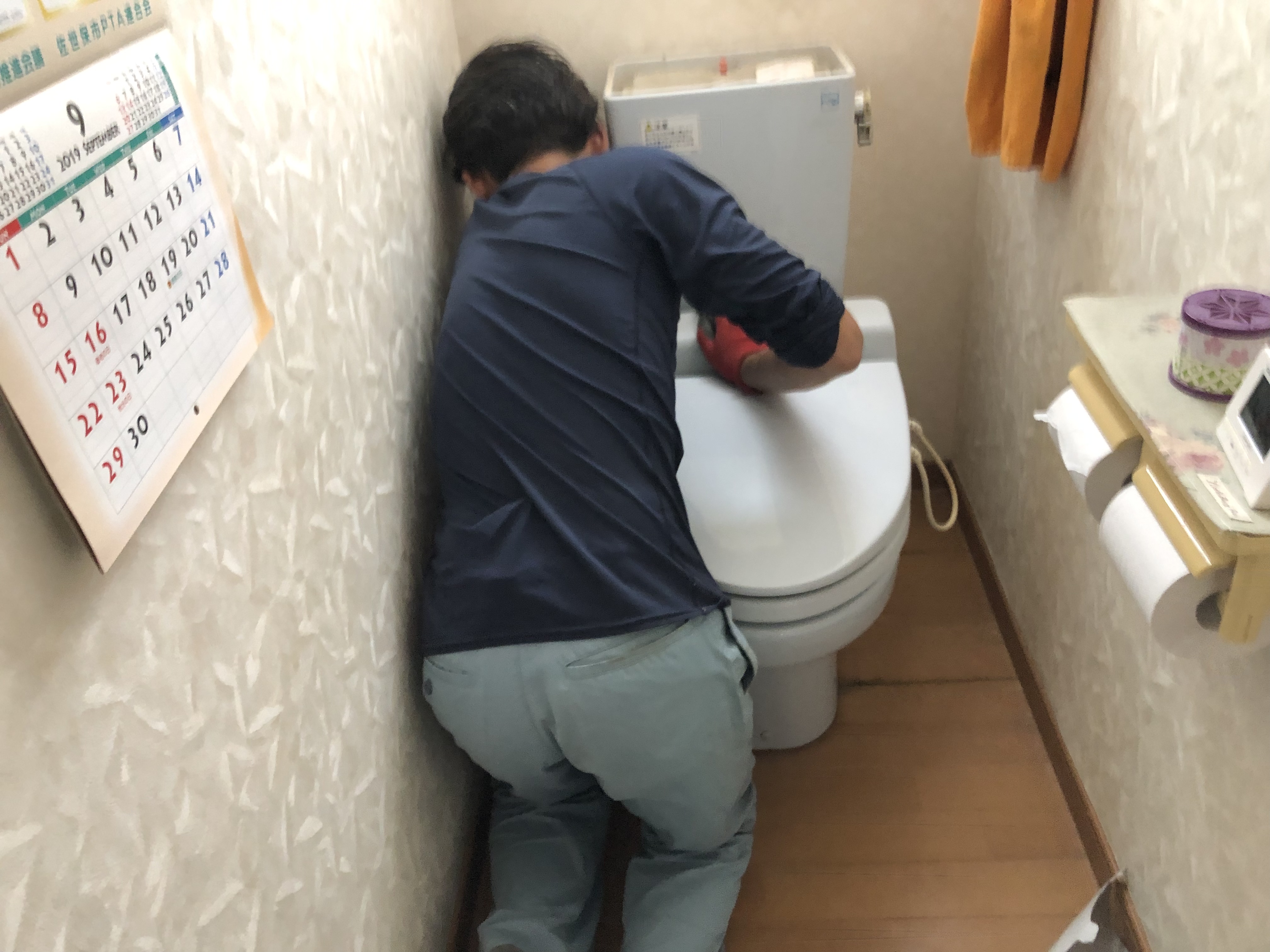 既存のトイレを外し、新しいトイレを据え置きます^ ^