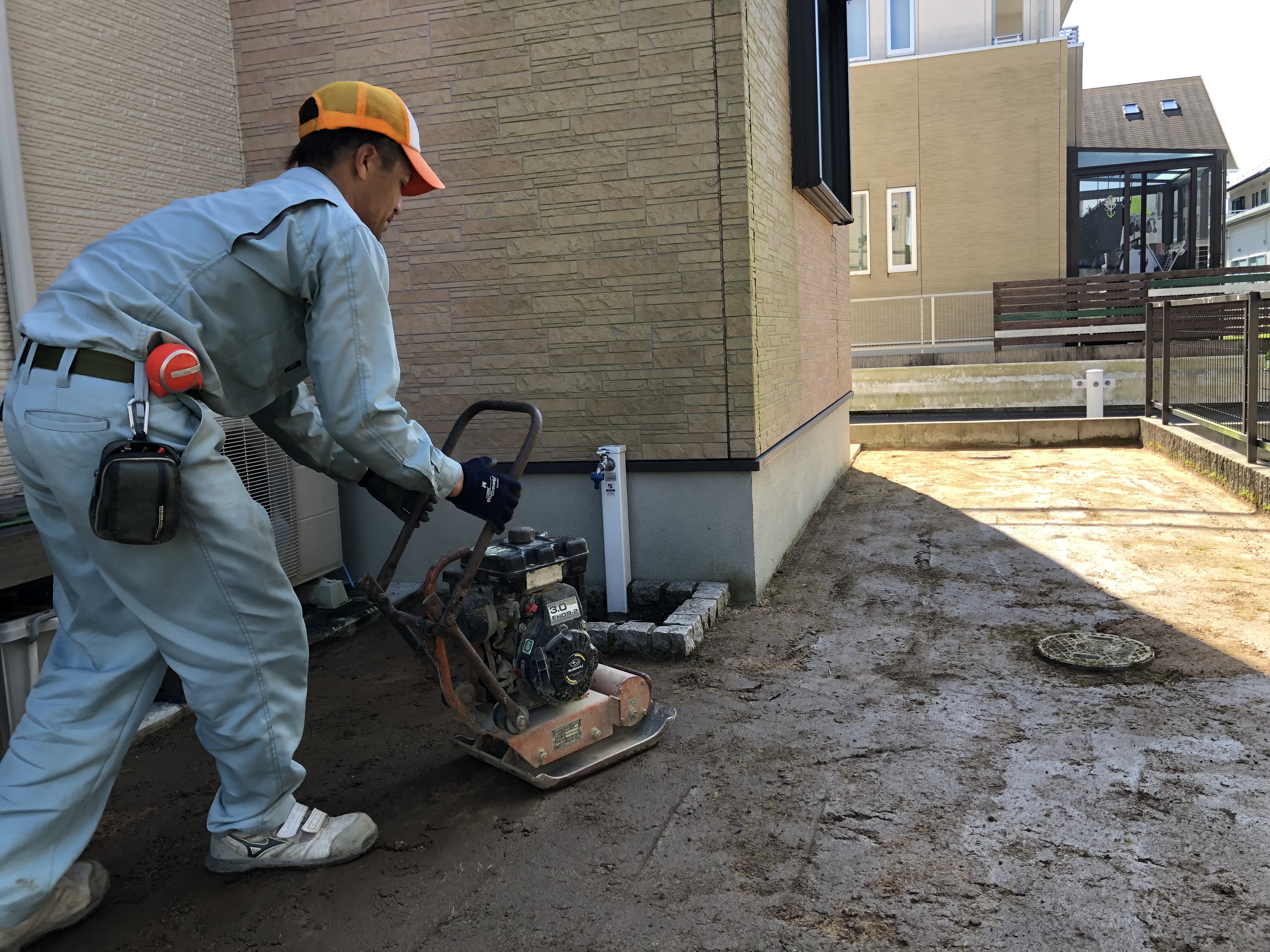 次に整地です。機械をつかい地をたたいて整えていきます✨