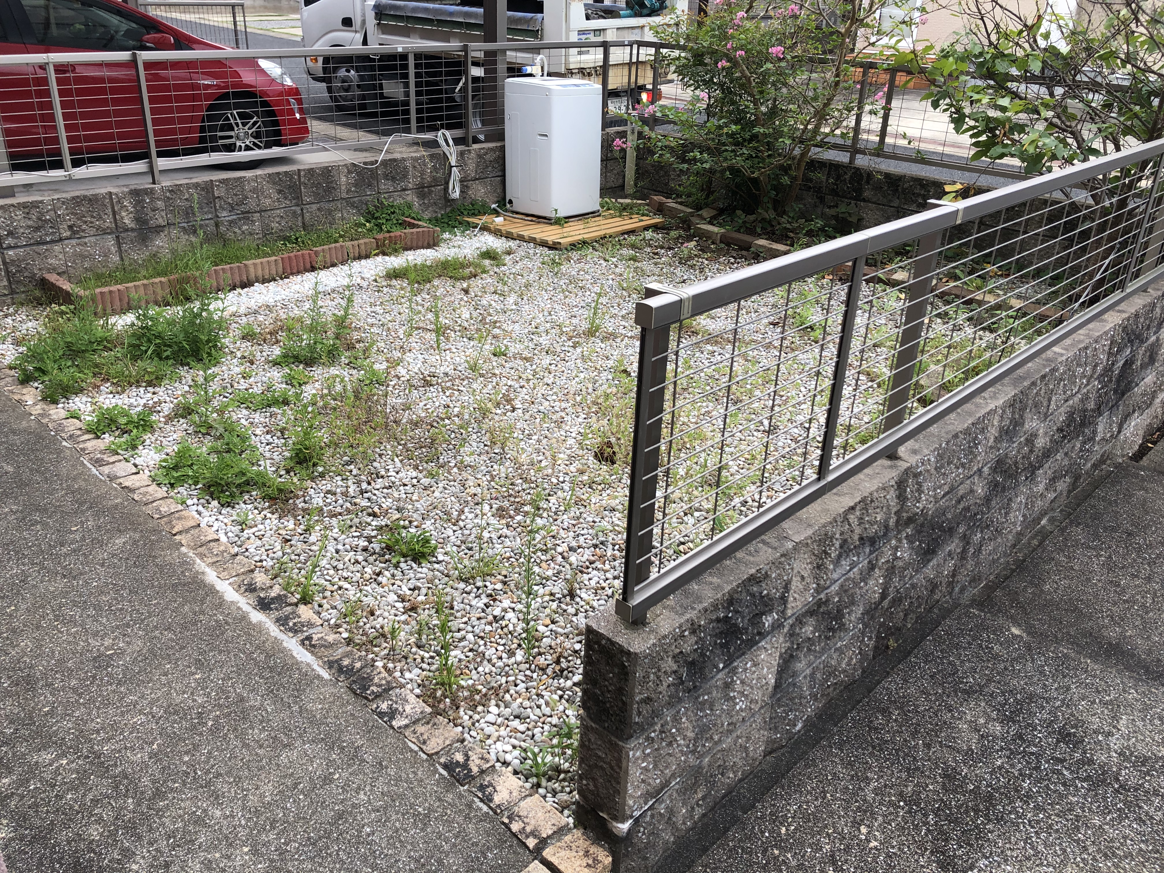M様邸ですが今回、駐車場の確保をしたいとのことで庭を駐車場にさせて頂く工事になります。又、ただの駐車場ですと寂しいとのことでしたので、コンクリートの洗い出し、人工芝、自然石を使用することで見た目も綺麗で明るくなるのではないかということで提案させて頂きました✨