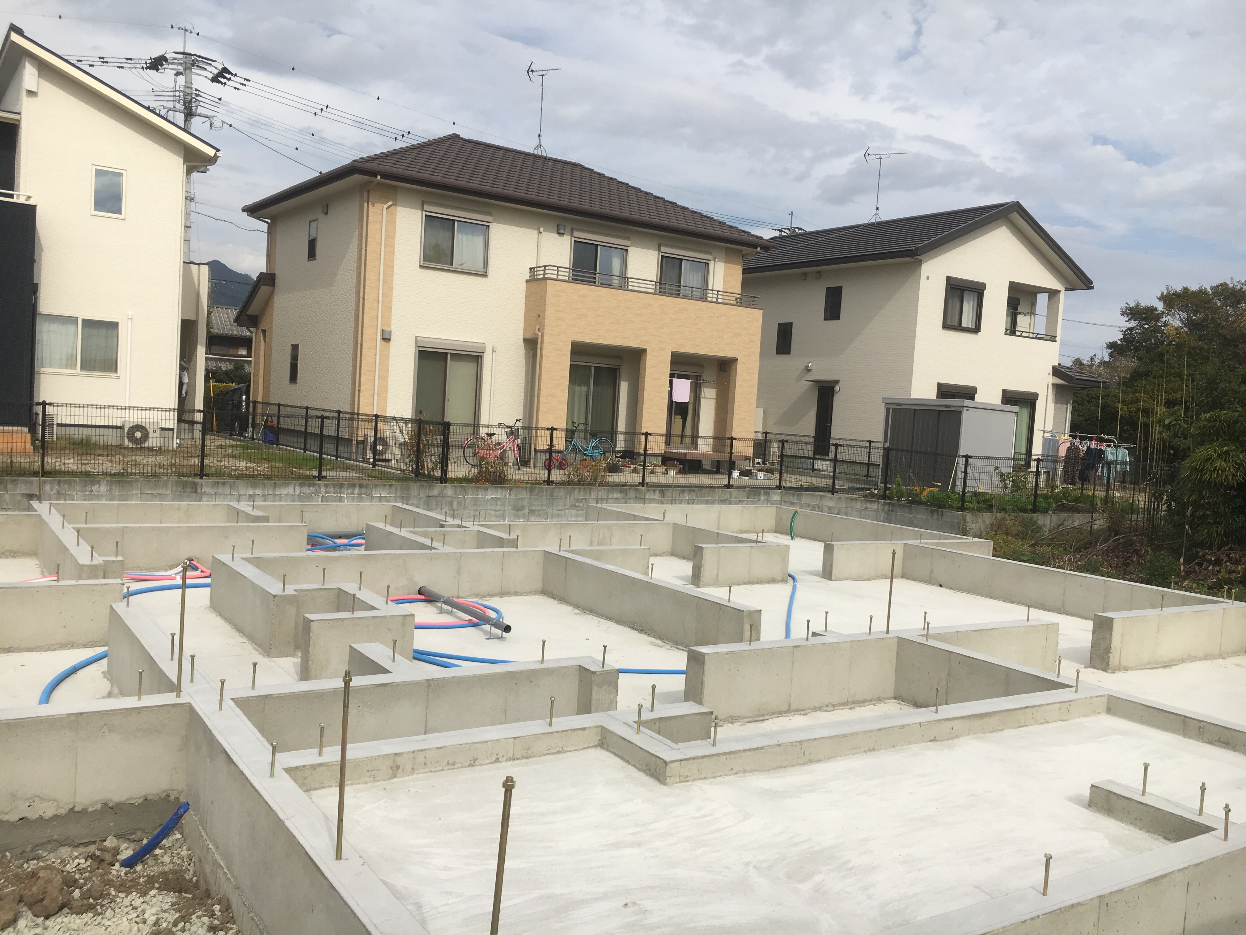 こちらは基礎工事も終わり、配管工事をしているところです😊
