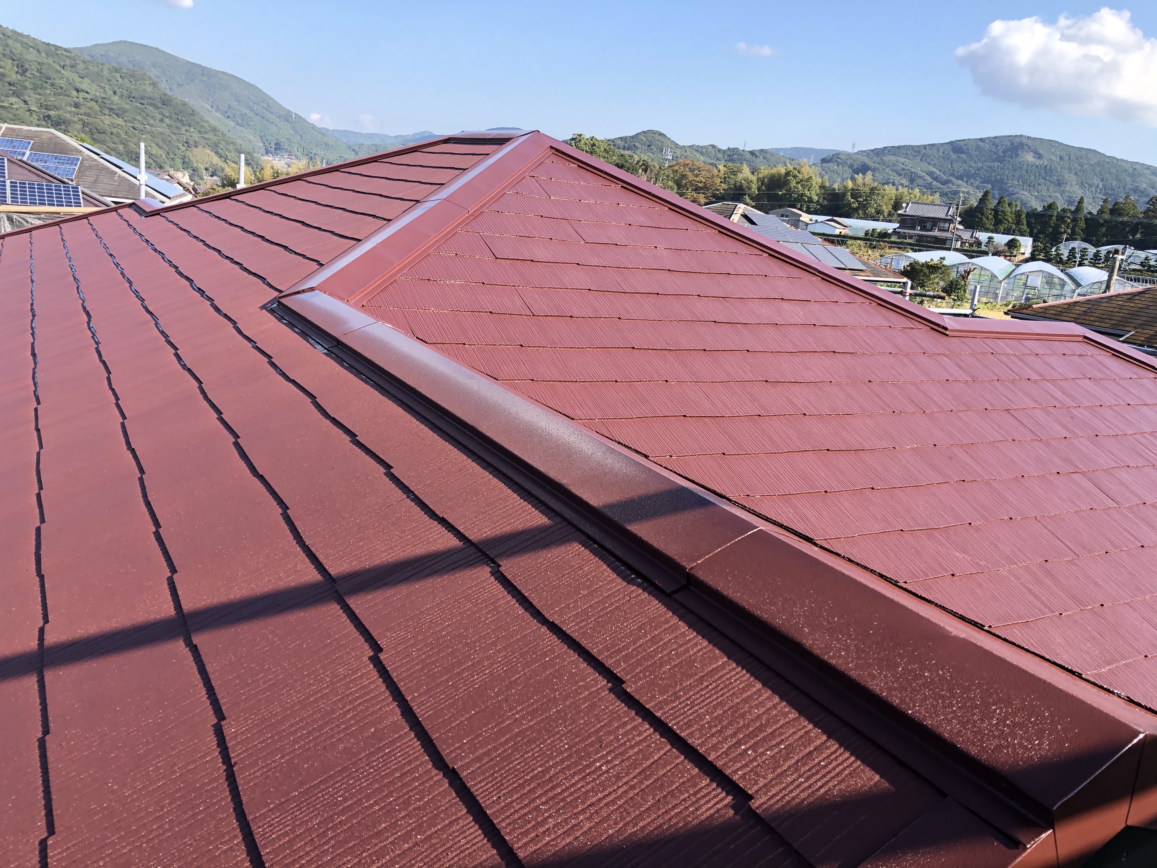色は赤風に見えますが茶色に近い色になります。又、遮熱塗料が入っており夏場は少し涼しく過ごせるのではないかと思います