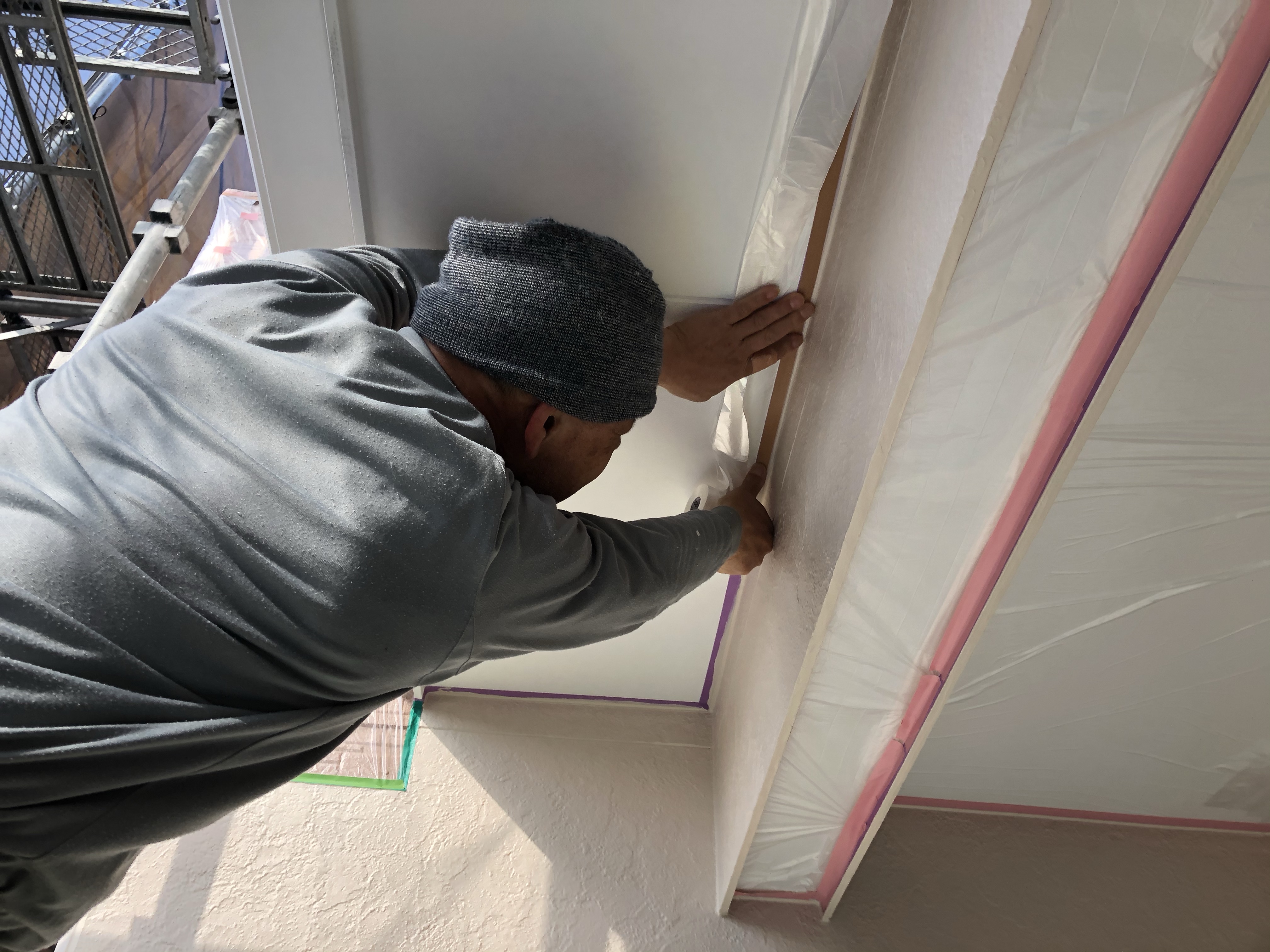 前日に吹き付け前の養生作業です