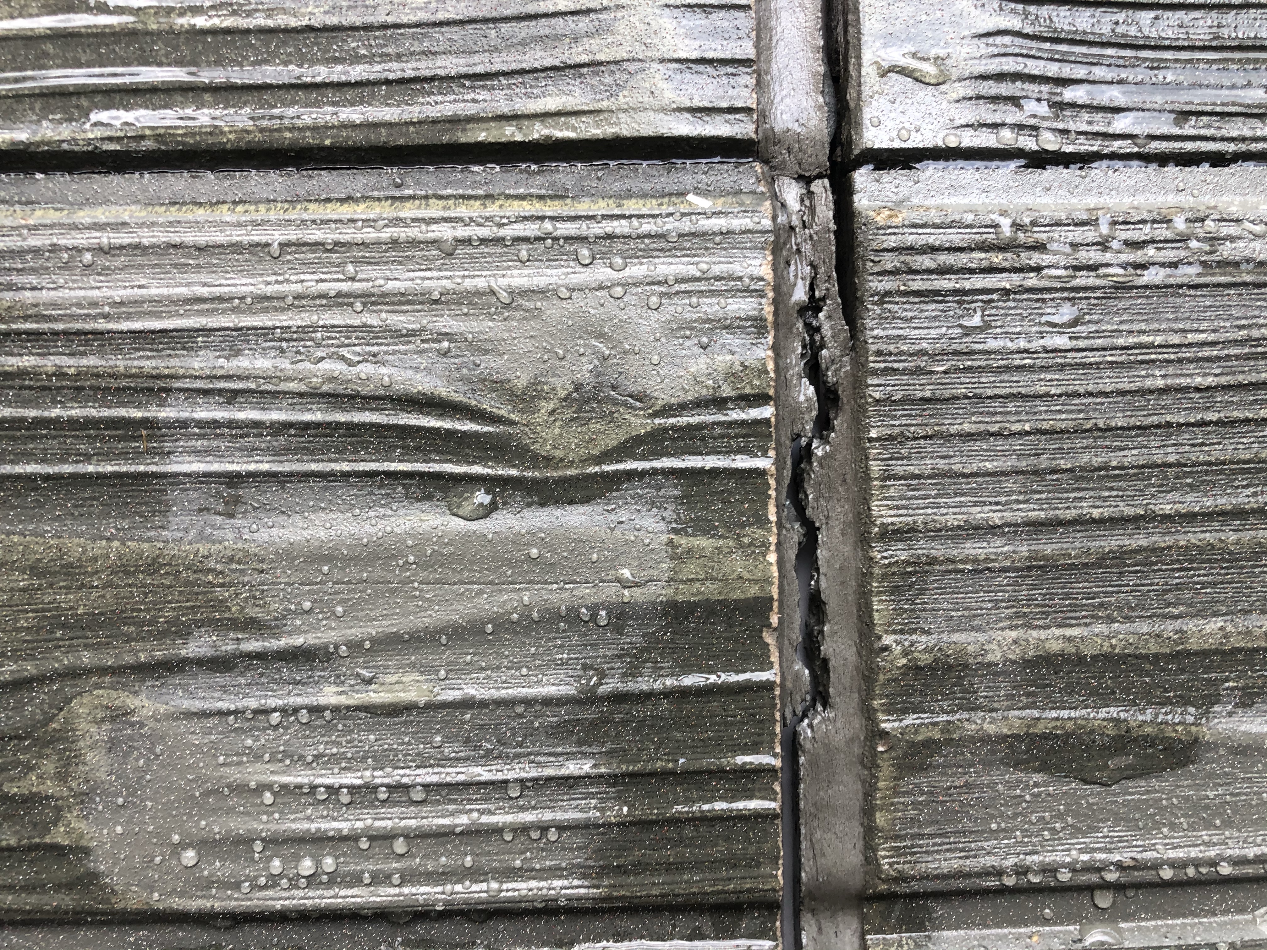 コーキングが劣化してチョーキングと亀裂が入っております。