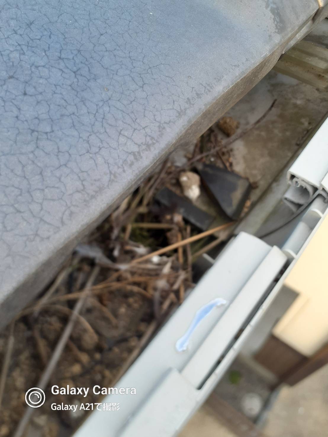 原因としては、太陽光の下に鳩が巣をつくるために木の枝を運んできたものになります
