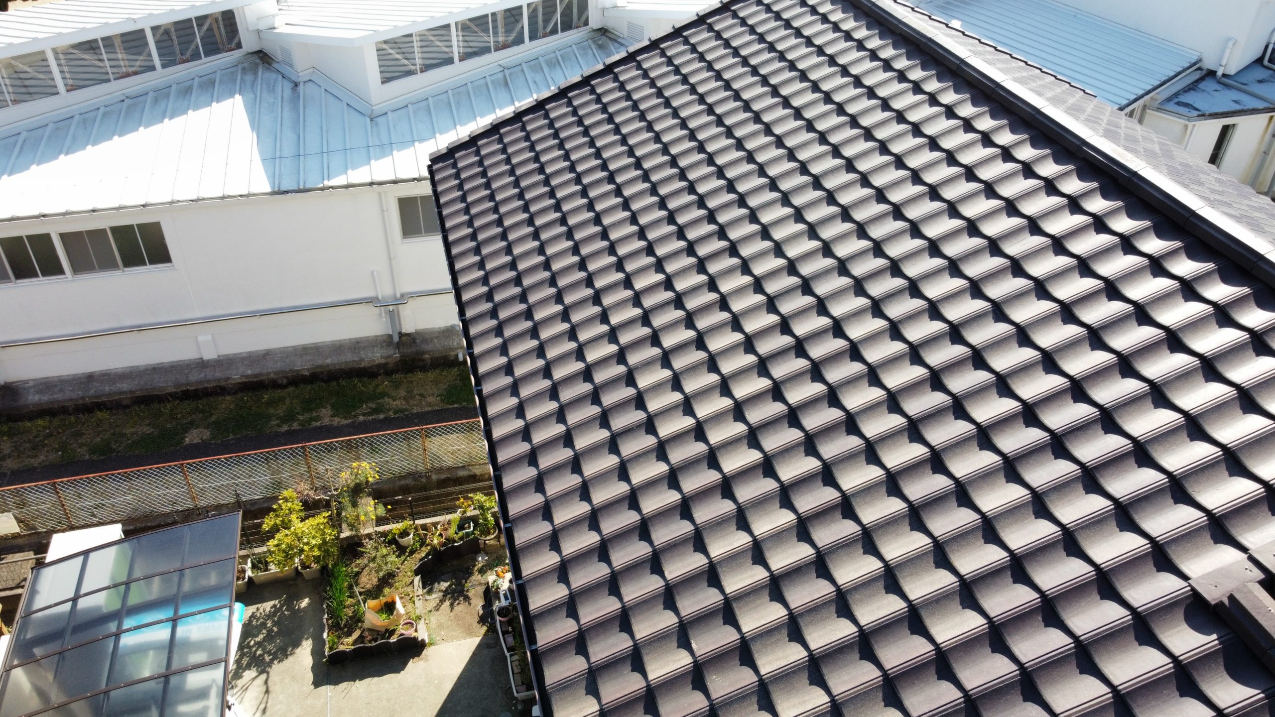 屋根点検ついても、なかなか登って確認するということはできないと思いますが、ドローンにて瓦が外れたり、ずれてないか、雨樋のつまりがないかなどしっかりと確認できます