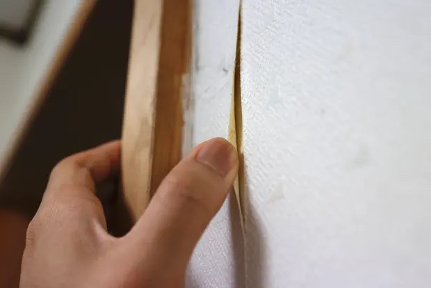この時には空気を抜くように、そしてクロスを伸ばすようにして「継ぎ目方向に向かって」行います。そうすることで縮んだクロスが伸びながら下地に接着してくれます。