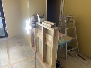 木工事の終盤にさしかかり、間仕切り壁や棚板・収納の取付けが順調に進んでおります❗️