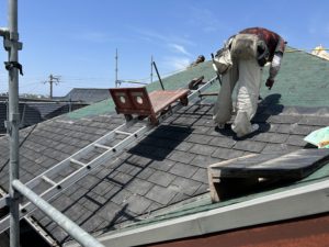 今回はスレート瓦という種類の屋根瓦になります!これをこれから新しく葺き替えていきます✨