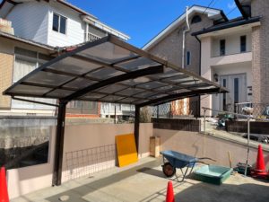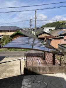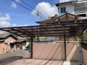 今回、カーポートを取り付けして16年程経っており、屋根材のポリカが劣化し破損した為、交換させて頂いております