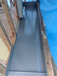 外部ですが、昨日通路部分のFRP防水工事が完了しました。