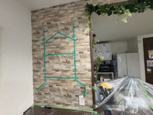 まずは、お客様にイメージがわかるように幅や高さを見て頂くためにマスキングしております。