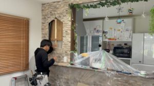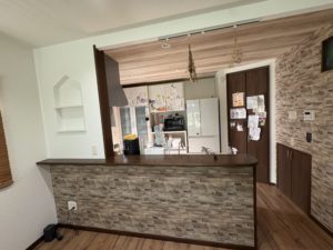 腰壁の上部にニッチを増設されたいのとキッチン上部の天井クロスを木目にされたいとのことでご依頼を頂いてます。