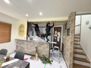 続いてクロス工事にてパテ処理してを行いクロスを貼らせて頂いております