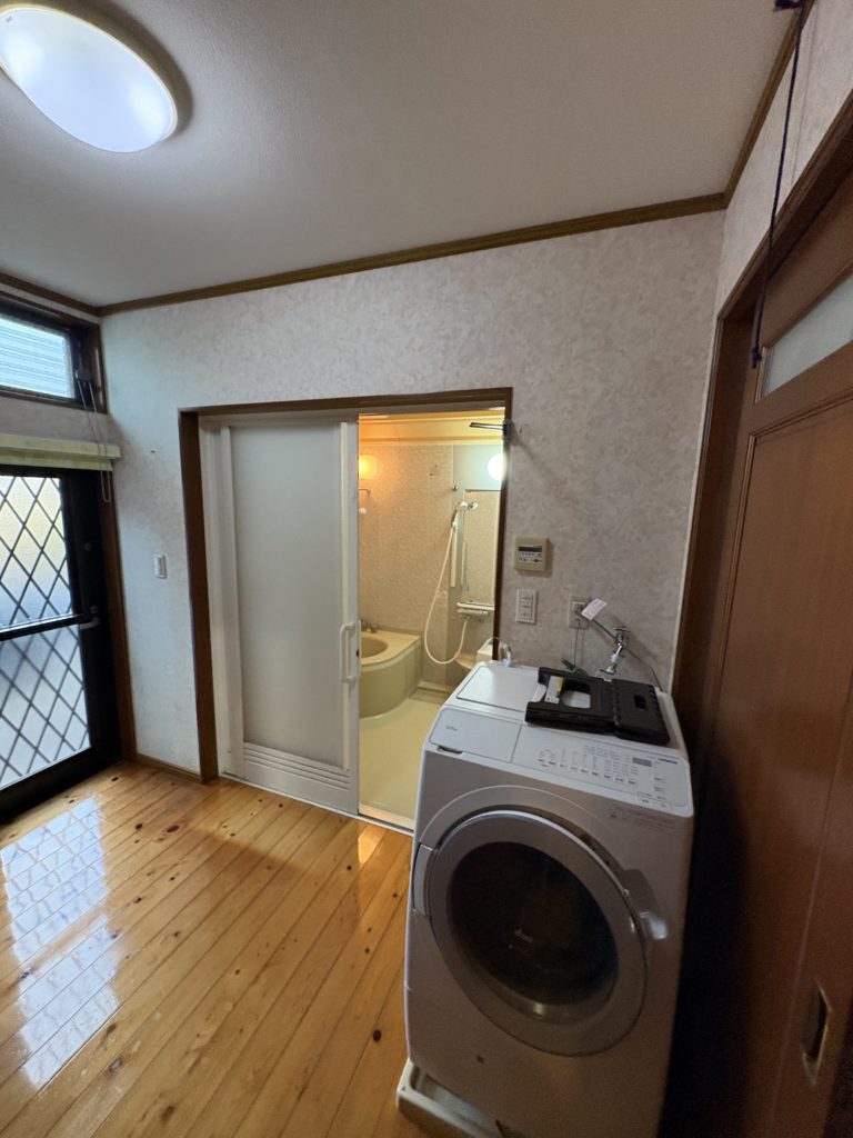 明日、電気配線工事、設備の給排水の逃し工事をさせて頂きユニットバス新設致します
