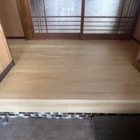 こんにちは 長野です 中里町のT様邸の玄関フローリング張り替え工事が