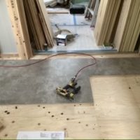 重尾町モデルハウス 本日は2階のフローリングを施工中です。 書斎スペ
