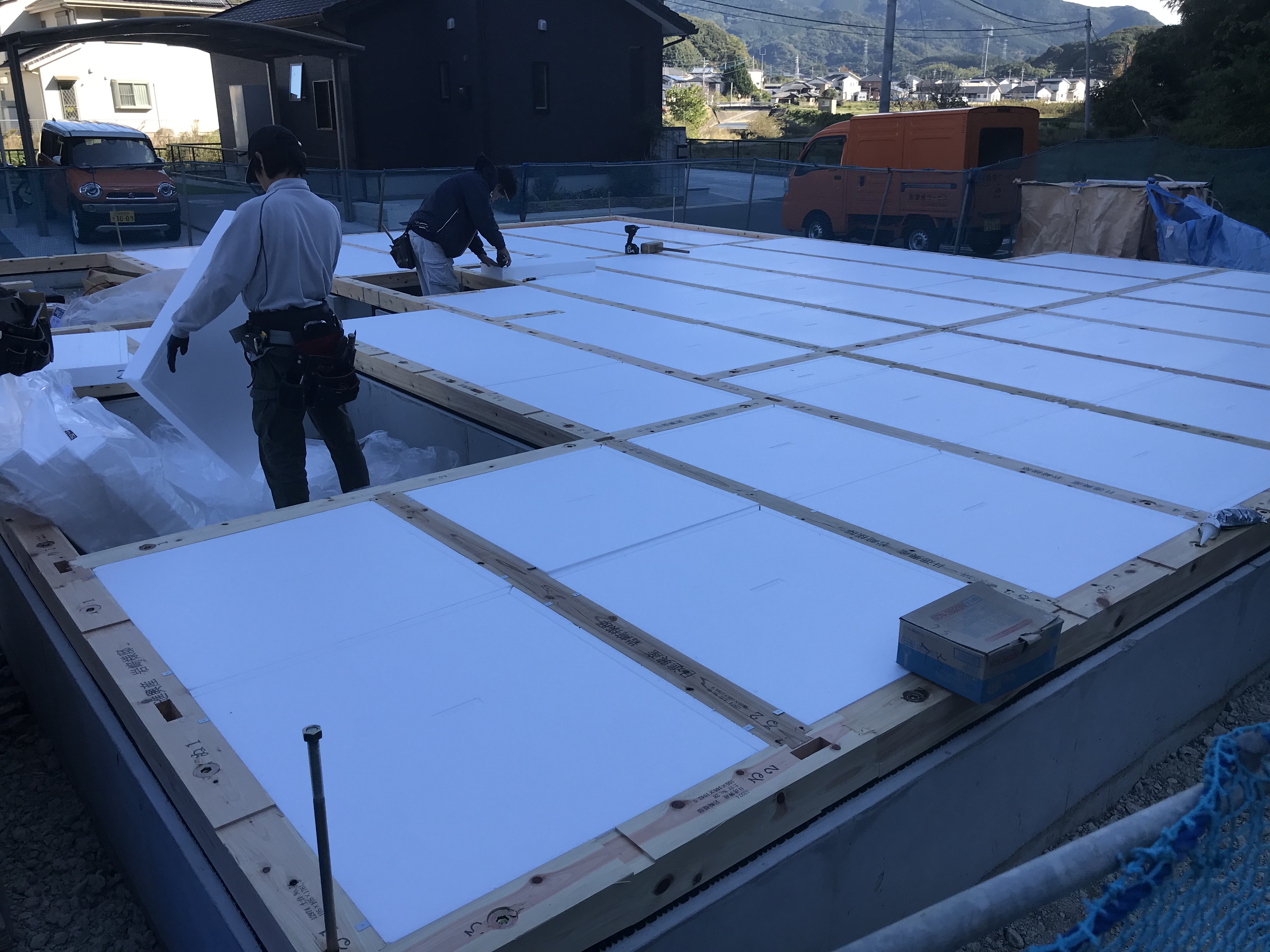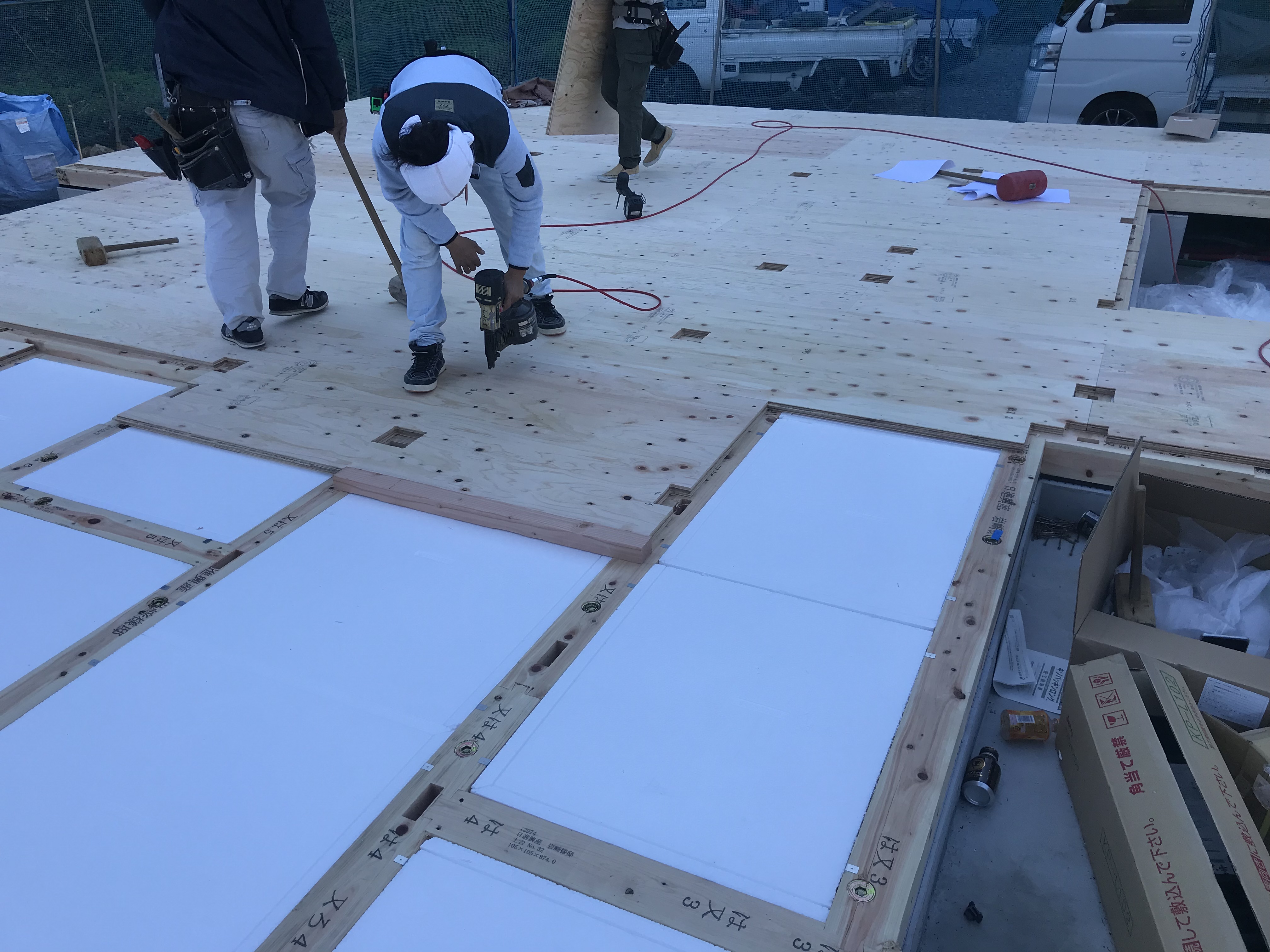 床用の断熱材を敷き詰めて、床合板まで施工出来ました😊