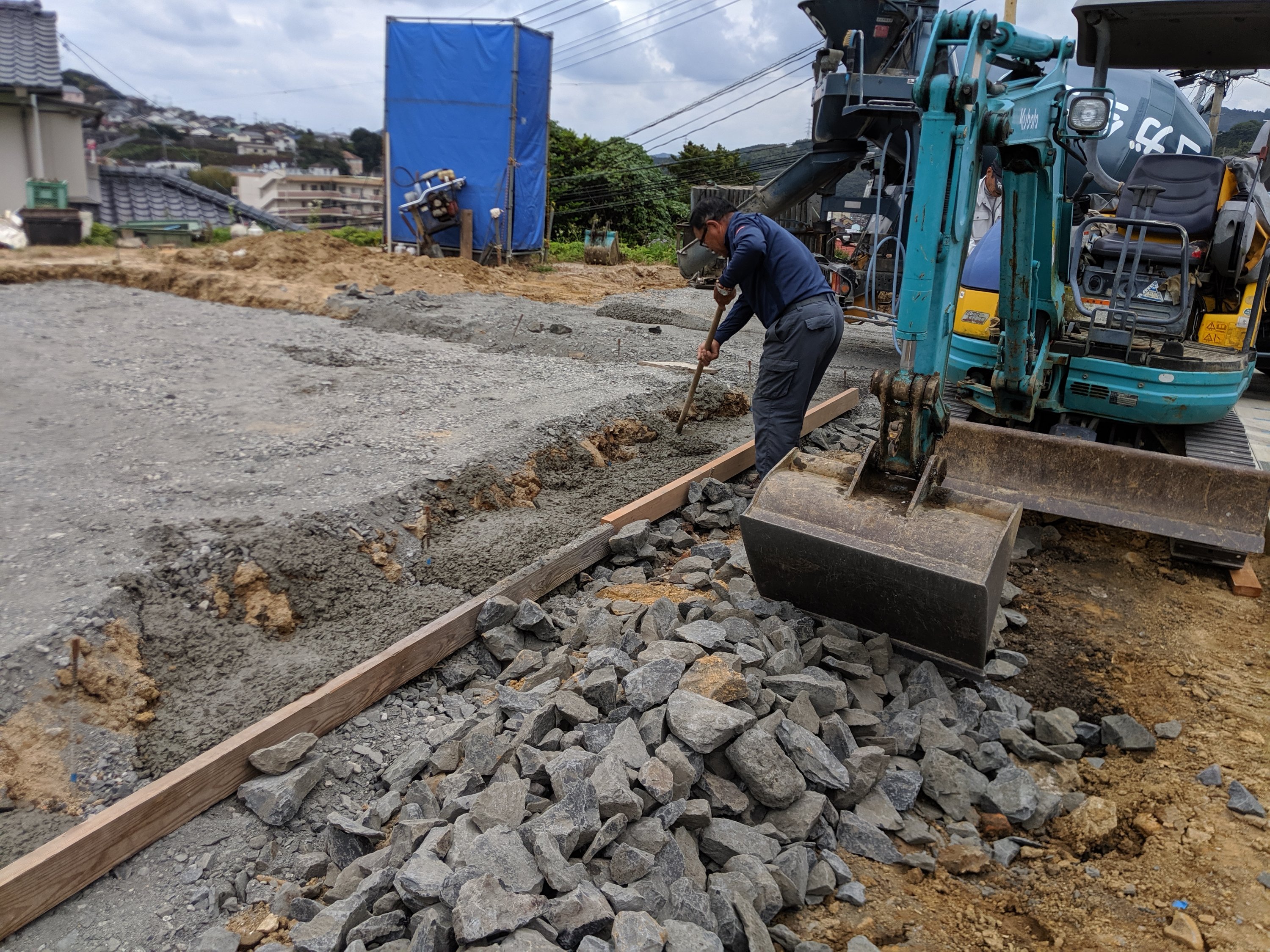 ブログをご覧の皆様こんばんは❗ 建設部の坂井です☺ 夕方突然の雨で驚かれた方も いらっしゃるのではないでしょうか❓ 本日は先日から着工しました野中町の S様邸についてお知らせです✨ 捨てコン打設をしている様子です✨明日には防蟻処理を行い、いよいよ配筋工事へと作業は進んでいきます❗先程も言いましたようにここ最近は突然の雨が降ってくる事もあります💦工程に遅れが出ないように、そして安全には十分に注意して作業を進めていけるように精一杯努めて参ります❗