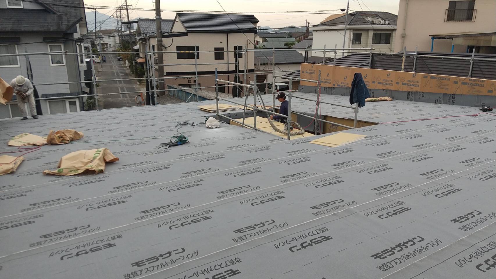 そして、屋根は合板を貼った後にルーフィングまで貼ってもらっています!