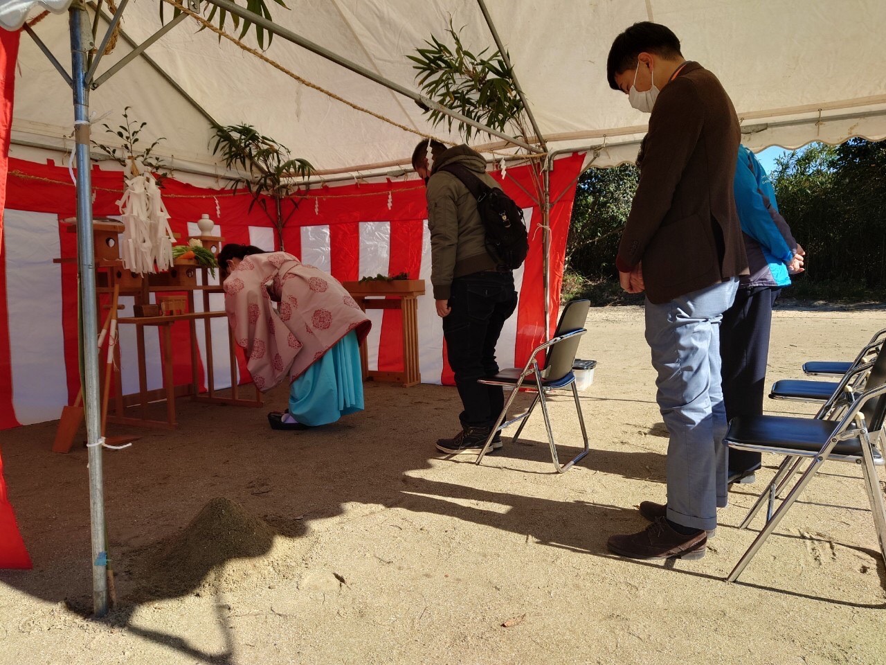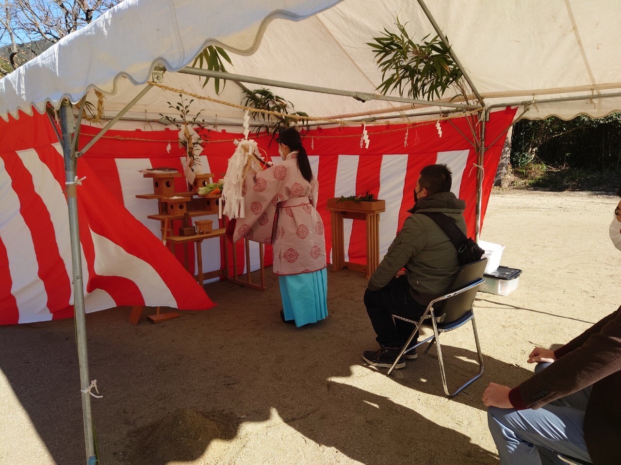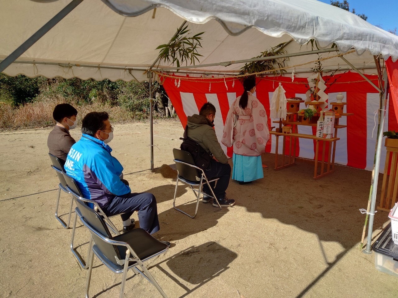 昨日の寒さとは違って、寒さも和らぎ少しだけ暖かい状況の中、杵島郡大町町では、N様邸の地鎮祭が執り行われました。