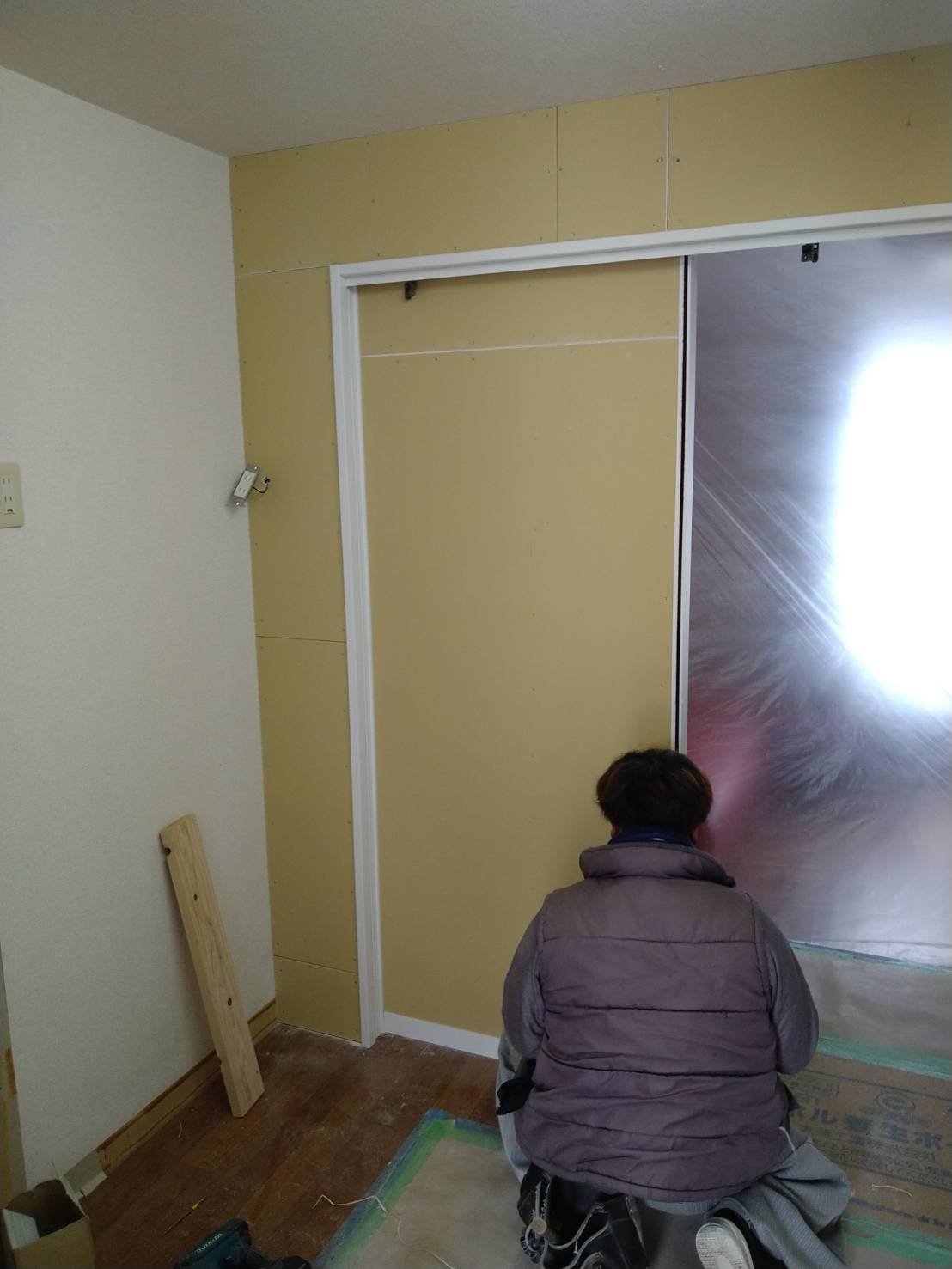 ボードもしっかりと張り付け、間仕切り壁の施工は完了です。