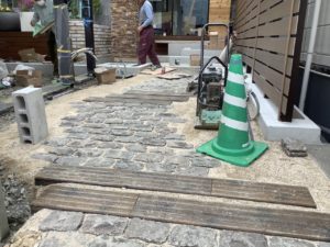 現在本社ビル横で工事中のKOYA新築工事のエクステリア工事が終盤になってきました。