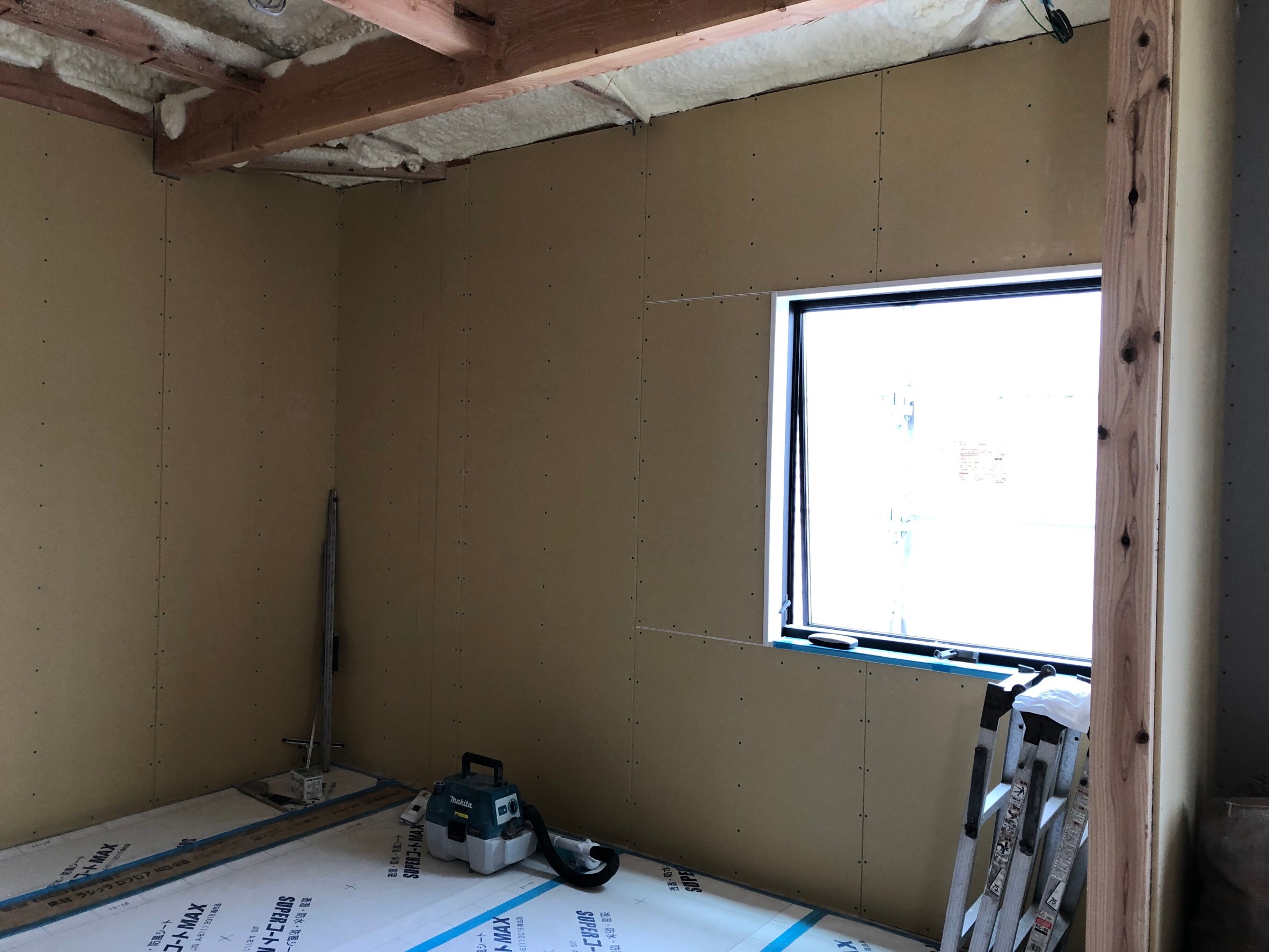 2階の方から進んでおりまして、ボードを貼り始めているところです!