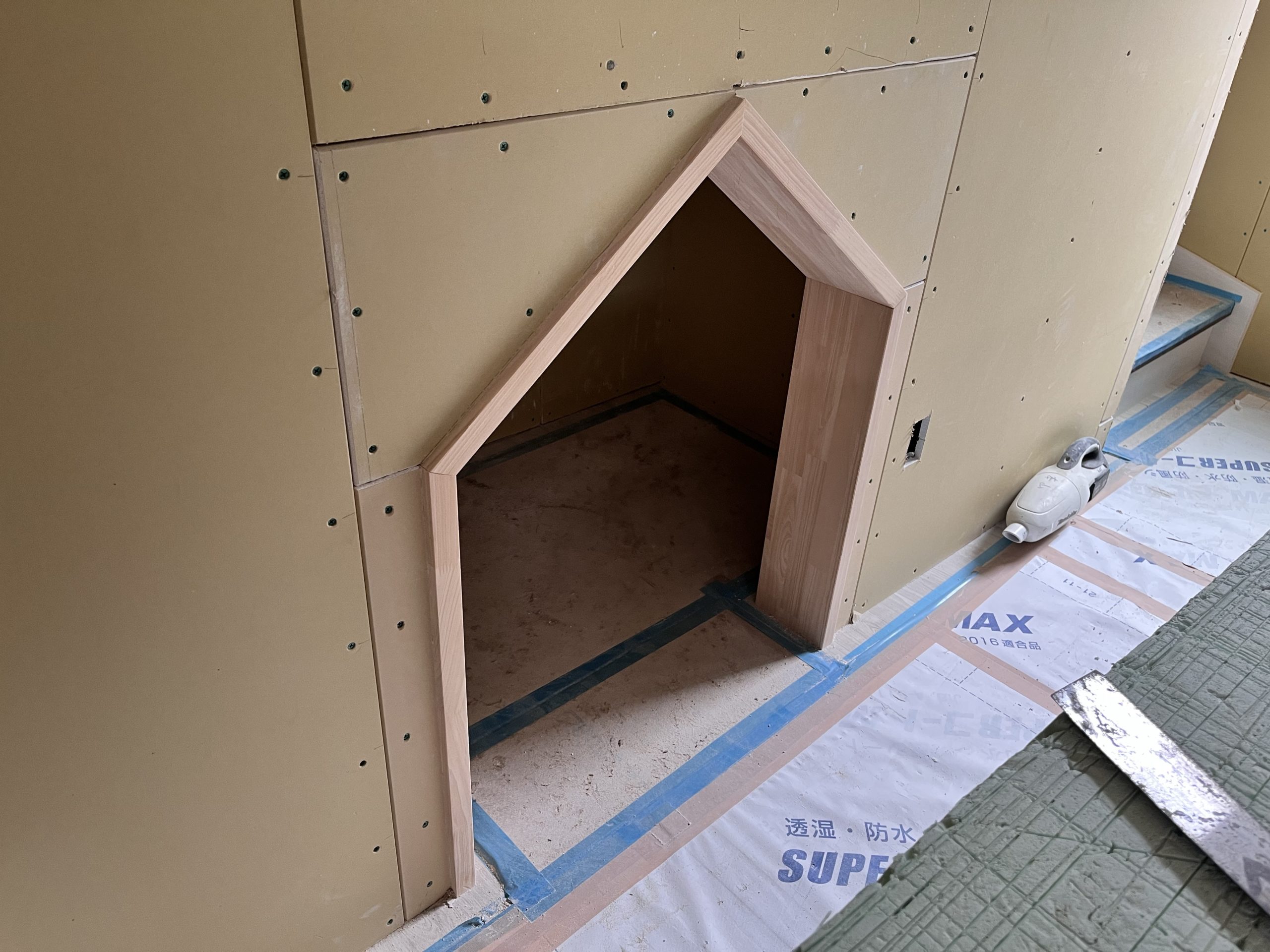 写真は階段下を利用したわんちゃんスペースです!家の外観に合わせた形にしてます!