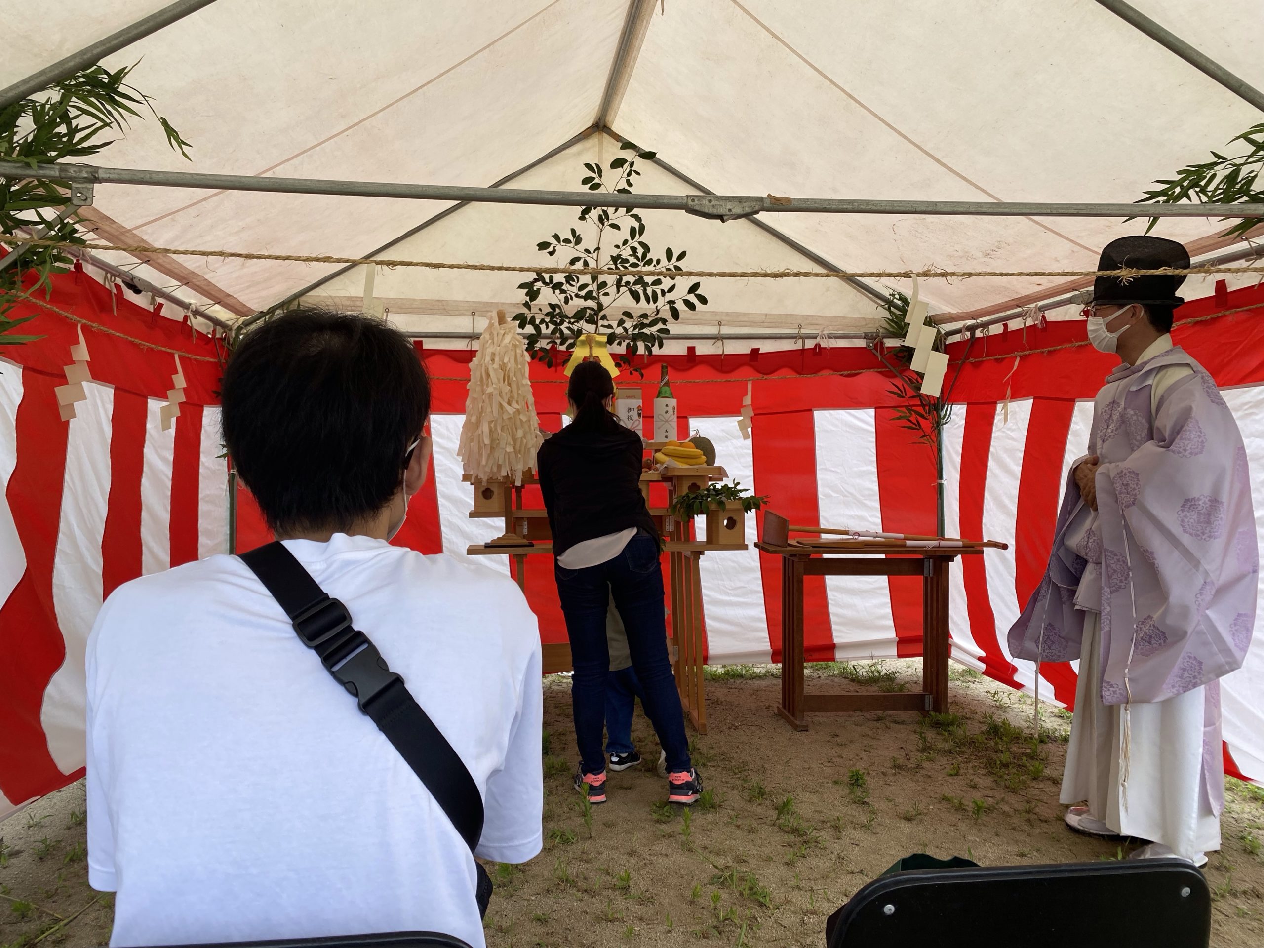 朝まで降り続いていた雨が心配でしたが催事の際は、雨が降る事もなく無事地鎮祭を終えることが出来ました。
