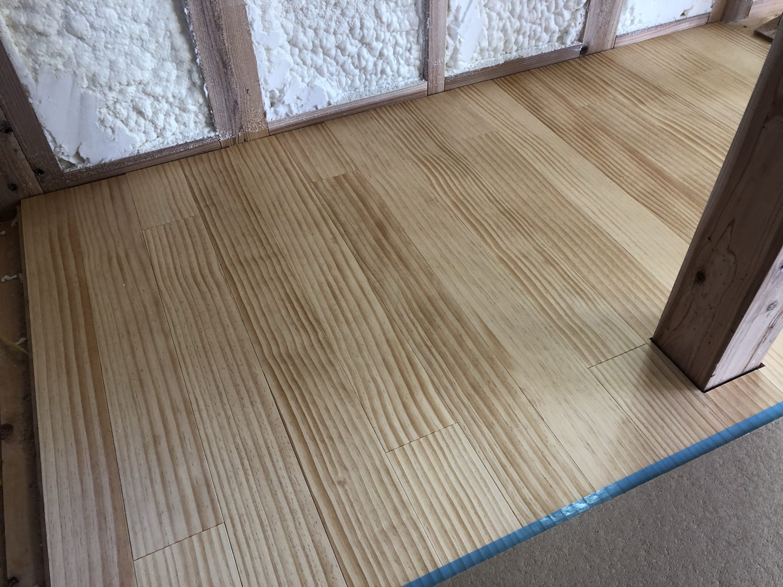吹き付け断熱が終わり、2階の方から床貼りが進んでいます!