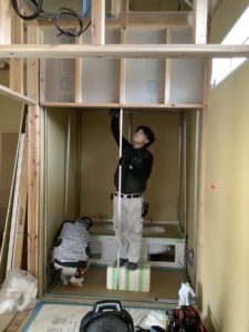 内部は壁ボードが貼られ、部屋によっては天井ボードまで貼られている状況でした。来週は換気扇のダクト等を施工し、メインのリビング天井ボードを施工していくようになります。