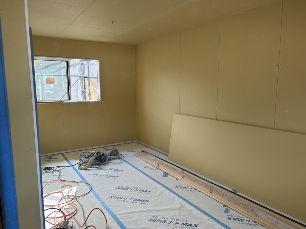 1階の方は、ユニットバスの施工が終わり、今は壁のボードを貼っています!