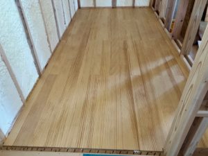 内部の方は、吹付断熱の施工が終わり、床を貼りました!