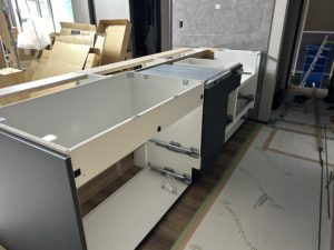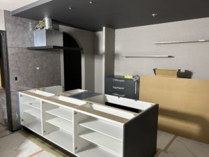 N様邸はシステムキッチンと背面収納ユニットの施工日でした。