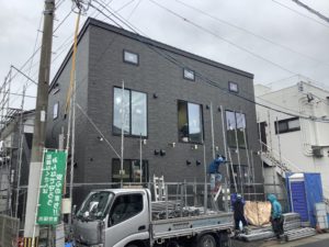 本日は足場解体作業で、行った際真っ最中で正面の建物がしっかり見えかたちになっておりました。