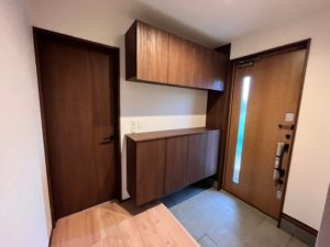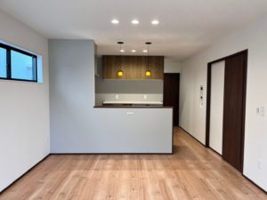 内部は明るい床とダークトーンの建具でシンプルながら洗練された雰囲気でまとめました!
