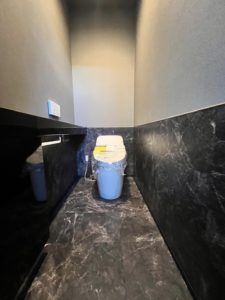 トイレにもこだわり、床材を壁の一部にまで延ばすことでメンテナンス性が向上しました。