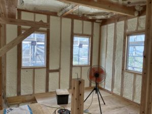 建設部の古家です😎 佐世保市I様邸の進捗です😊 昨日、断熱材の吹付が完了しました👍 断熱材吹付け後は毎回思うのですが、夏・冬は特に体感温度が吹付前と比べると全然違う様に感じます👌 機会があれば、温度計で測ってみたいと思います🌡️
