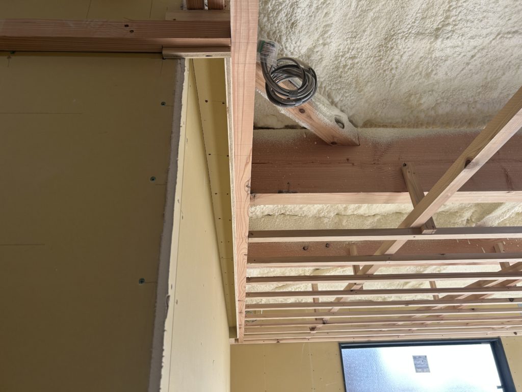 現場に行った時は大工がLDKの天井下地を組まれていました
