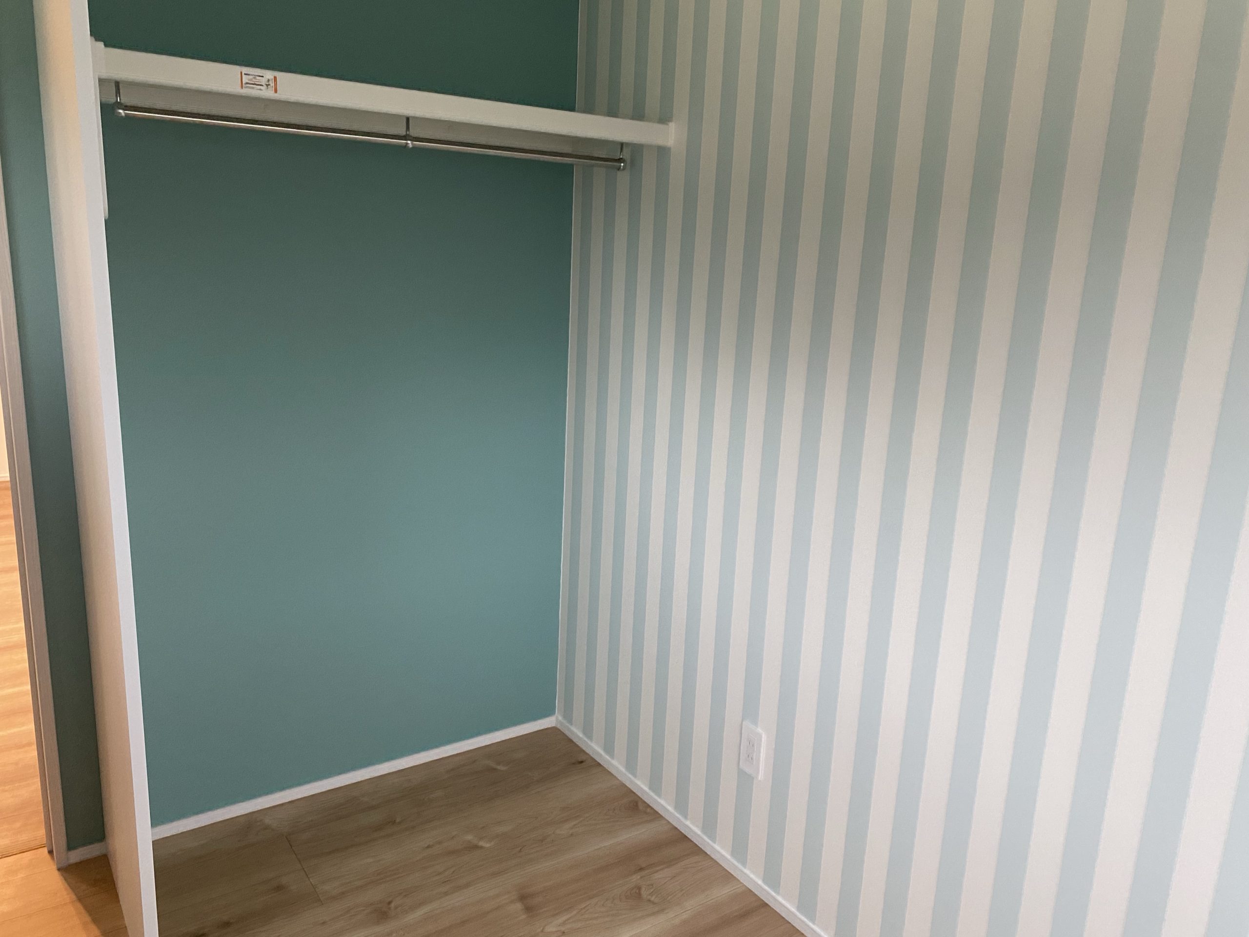 こちらは子供部屋ですが壁を水色でまとめた雰囲気になっております。写真はありませんが、窓のロールスクリーンも水色となっております。