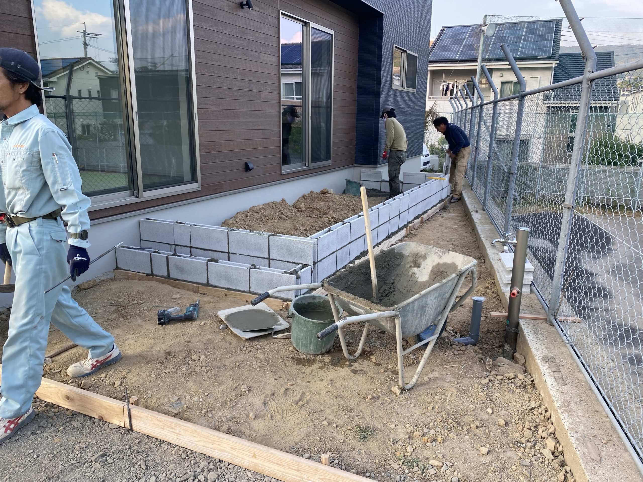 広めのテラスですね!ここは木目調のタイルを貼っていく予定です。かっこいいテラスができそうです!