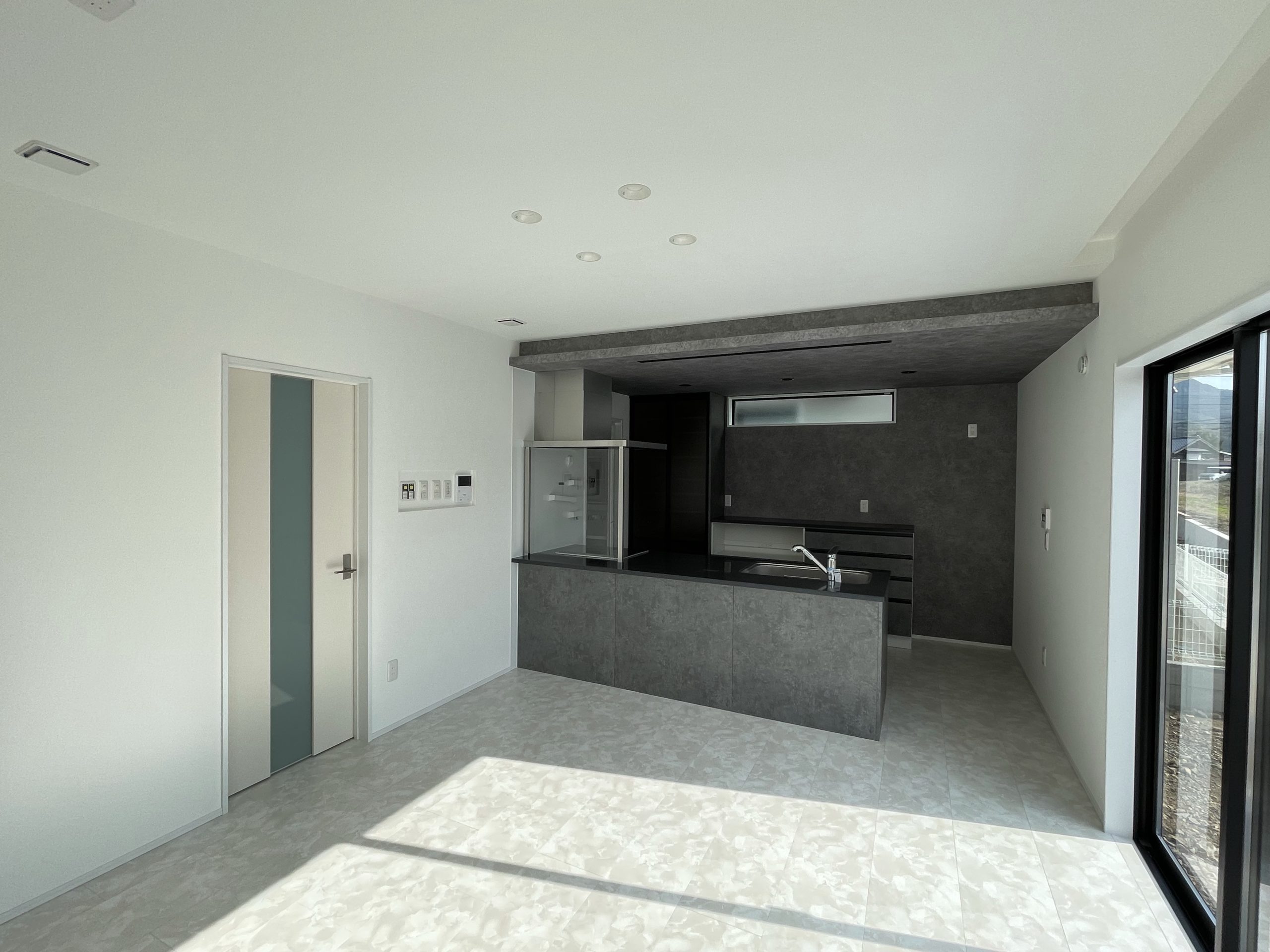 キッチンの天井を下げており、空間が仕切られた印象になります。