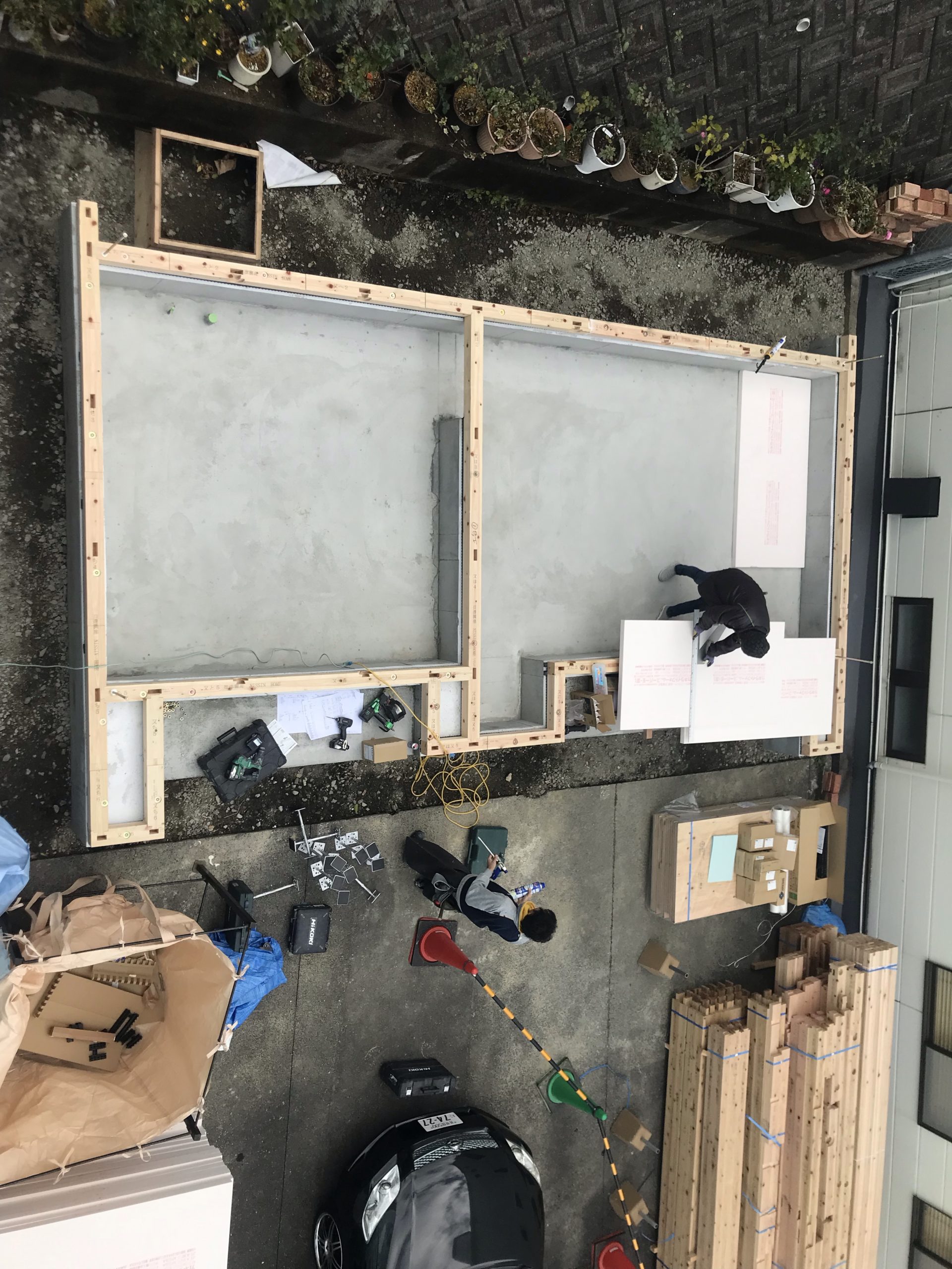 こんにちは建設部の木原です!今日は先日搬入された土台を敷きに大工さんが入っています^_^