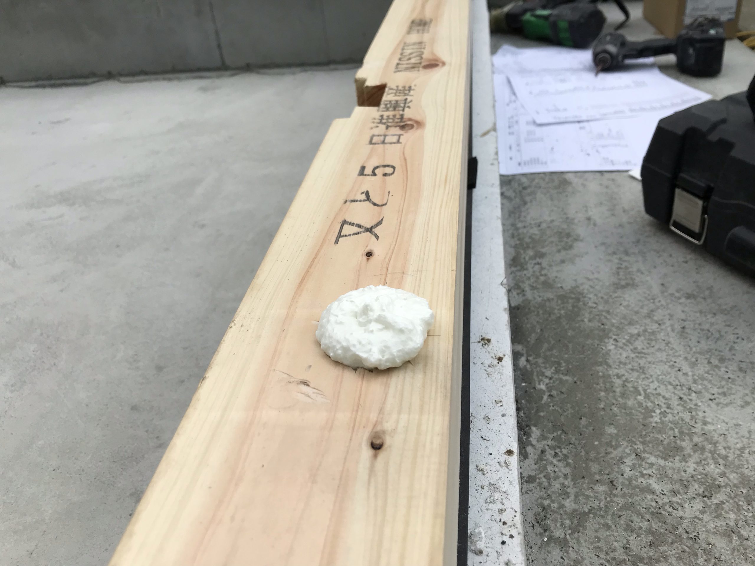 土台を止める金物部分にもしっかり断熱材を吹き付けています^_^