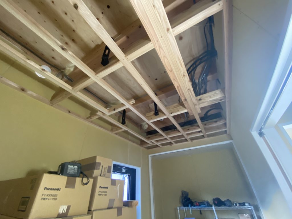 もう既に壁は全て石膏ボードが貼られていますね😃
