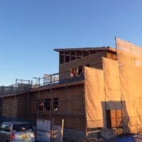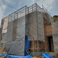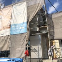 Nさま邸 大野町 本日は建物外部に防水遮熱シートを貼っています。 サ