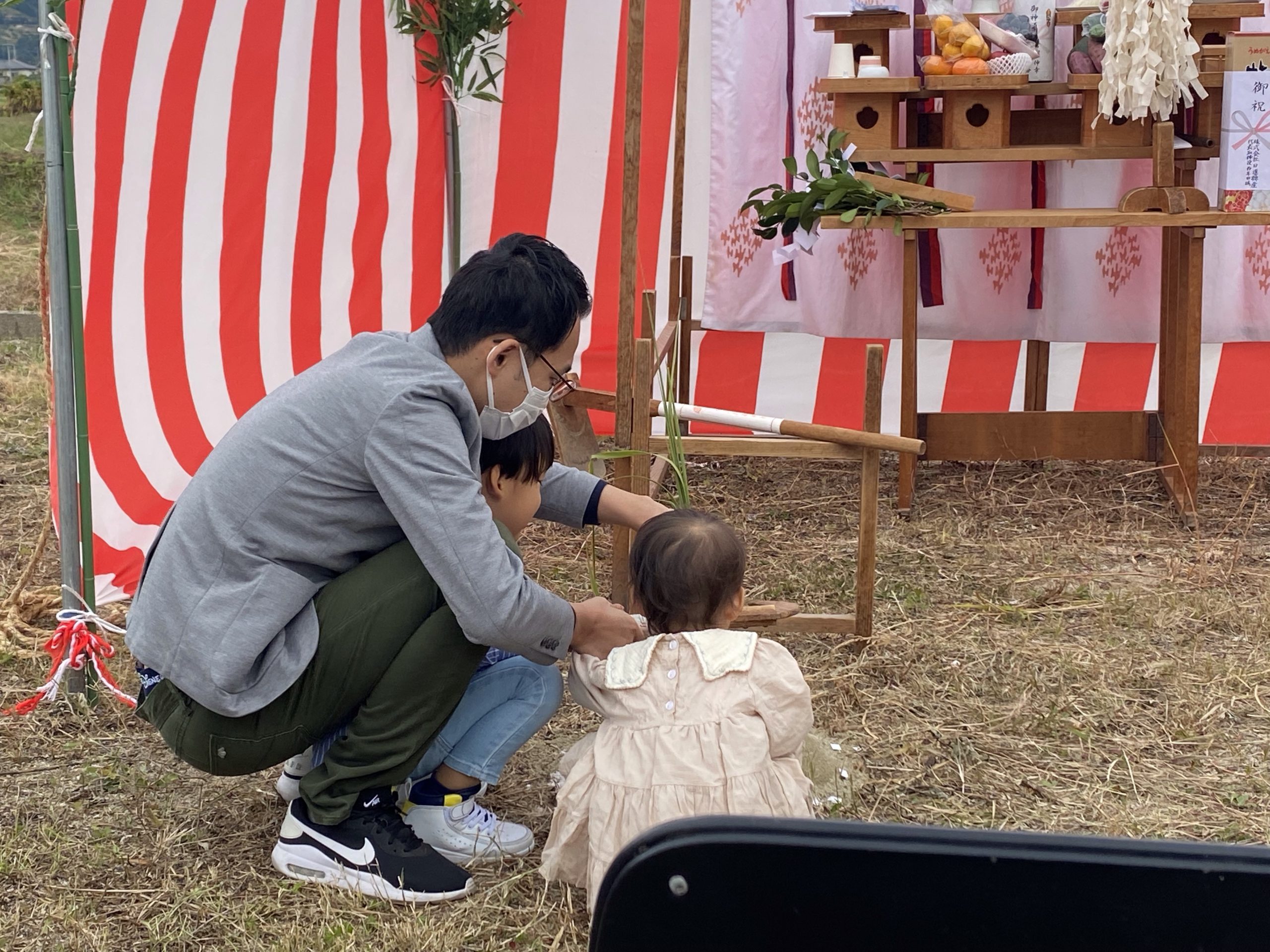 お二人のお子様とご一緒に鍬入れを行われ、工事の安全祈願を行われました。